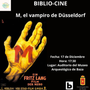 La primera cita será el miércoles 17 de diciembre, a las 17:30 horas, con una nueva sesión de Biblio-Cine, una iniciativa que acerca al público grandes obras de la historia del séptimo arte. En esta ocasión se proyectará “M, el vampiro de Düsseldorf”, una de las películas más emblemáticas del director alemán Fritz Lang, considerado una figura clave del cine mundial. El filme, inspirado en la historia real del asesino en serie Peter Kürten, conocido como “el vampiro de Düsseldorf”, es una referencia imprescindible del cine expresionista y del thriller psicológico, y ofrece además una profunda reflexión sobre la sociedad, la justicia y la condición humana.