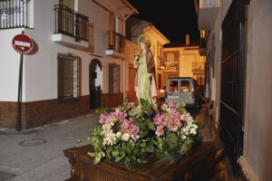 Uno de los momentos más simbólicos volvió a vivirse en el barrio de San Juan, donde no faltó la imagen de Santa Lucía, portada por los vecinos de este popular barrio bastetano y que fue trasladada en procesión desde la iglesia de San Juan hasta el solar en el que se congregó el vecindario en torno al fuego. Una escena cargada de tradición que refuerza el carácter religioso y popular de una celebración transmitida de generación en generación.