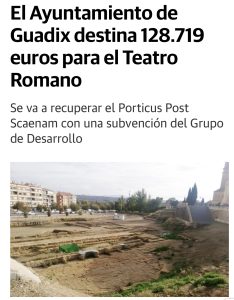 Lo más vergonzoso es que la mayoría de las inversiones millonarias van para Guadix. En los últimos 3/4 años más de 4 millones de euros han recibido los accitanos para su alcazaba, San Torcuato y teatro romano… Casi todo, del 1,5 % Cultural y de otras inversiones culturales. No olvidamos, entre otros edificios, la restauración de la iglesia de la Magdalena (Grupo de Desarrollo Rural de Guadix). Mientras tanto para Baza 0 euros de dichas inversiones. Ahora ha vuelto a pasar lo mismo: 1.5 millones para Guadix, y nada para Baza.