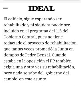 No sólo es que tengamos malos gestores municipales (PSOE), la Junta (antes PSOE, ahora PP) está boicoteando año tras año la recuperación de los BIC bastetanos, no cumplen con los compromisos del Parlamento, con lo que ellos han reclamado y prometido…