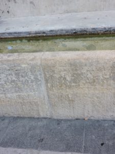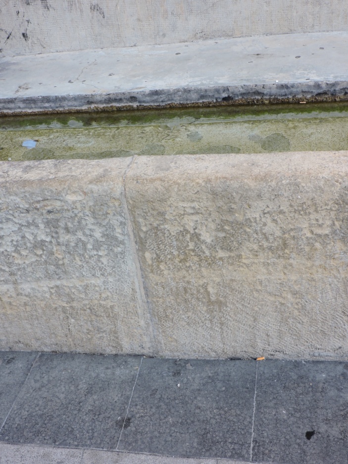 2.1. Si un pilar tiene el abrevadero (pilón bajo) de piedra (Tenerías, pilar situado al final de la calle del Agua) no es de recibo pintarlo con pintura gris, lo que suele hacer el consistorio cada nueva intervención. Lo lógico es dejar la piedra en su color…