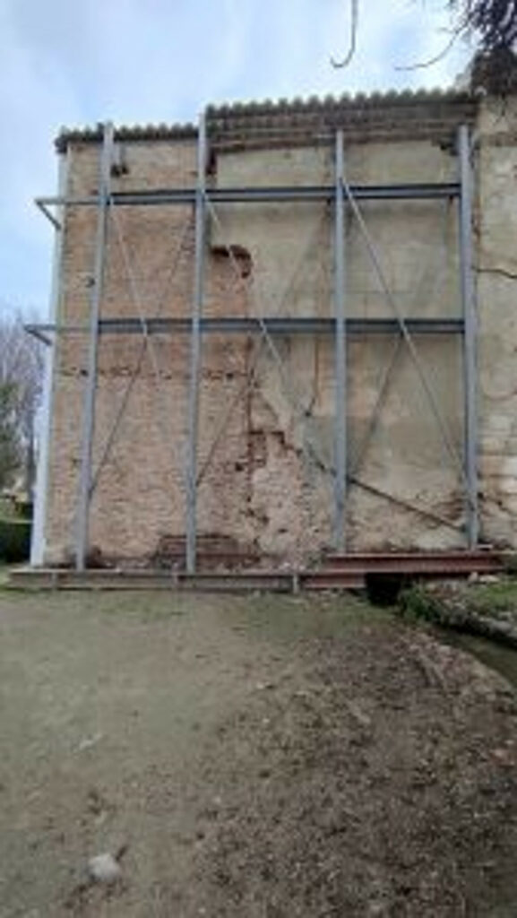 Desde aquí agradecer que este ayuntamiento abra algunas dependencias del palacio a los ciudadanos. Pero sentimos decirles que los problemas (humedad galopante) que tenía antes de las últimas intervenciones no pueden desaparecer con unas capas de pintura y la iluminación. Las enormes filtraciones siguen afectando a los muros de tapial del palacio y a las carpinterías policromadas y seguirán hasta que no se impermeabilice el caz que pasa junto y bajo el palacio.