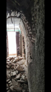 En cuanto al palacio de Cadimo pudimos apreciar como los informes que se le han enviado al Defensor, desde Baza y Granada, no se correspondían con la realidad. Vieron como era falso que se habían restaurado la portada, las carpinterías, el alero… Su interior una verdadera ruina.