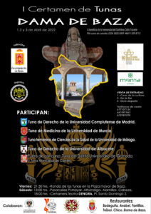 Pues bien, resulta que esta noble y veterana institución estudiantil, la Tuna, va a regalar más alegría, en esta ocasión, otra vez más, a la ciudad de Baza, en aquella ocasión el regalo se lo hicieron a la villa de Caniles. En 2018, la ciudad de la Dama acogió el Encuentro Nacional de Tunas Femeninas, es decir, que en Baza se dieron cita la mayoría de Tunas Femeninas de toda España. Nuevamente, con el inicio de la primavera, durante los primeros días de abril del 2022, Baza, la ciudad de la Dama, volverá a acoger a la Tuna, en esta ocasión tendrá lugar el primer certamen de tunas universitarias, que albergue la ciudad, organizado por la Tuna del Distrito Universitario de Granada, la tuna activa decana de España, la más veterana. Sin lugar a dudas, se prevé que sea un acontecimiento único. En primer lugar, por la deferencia, que ha mostrado la tuna más veterana española perteneciente ésta a su vez a la Universidad de Granada, de celebrar en Baza dicho evento.