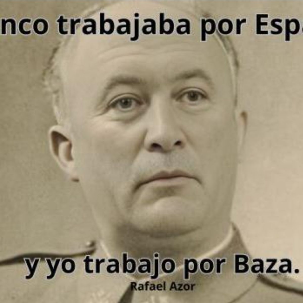 - También en Pleno defendió la figura de Franco sin ningún reparo, es más, con todo el orgullo, al incluso compararse con él señalando que “Franco trabajaba por España, y él, por Baza”. Tan orgulloso está de ello que su foto de perfil en WhatsApp sigue siendo un meme con su cara puesta sobre una foto de Franco con esa frase… Terrible, pero cierto.