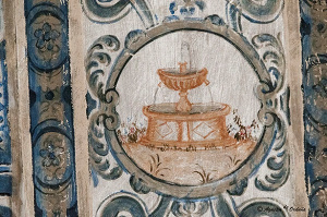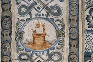 En el cuarto tondo un pozo, “Puteus aquarum viventium” -“Pozo del agua viva”- (Cantar de los Cantares 4, 5). Encontramos aquí una metáfora del agua, fuente de la vida y símbolo de la abundancia. María sería ese pozo, en el sentido en que ella contuvo en su seno la verdadera agua que da la vida: Jesucristo.