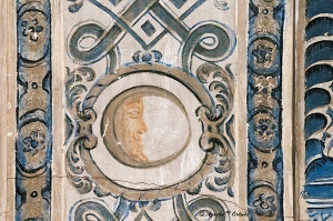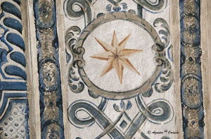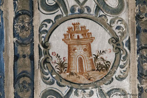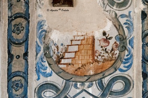 En el intradós del arco toral de acceso a la capilla mayor una banda encintada formando cruces y once tondos encadenados en los quedan alojados los símbolos de las letanías lauretanas, convirtiéndose éstos en la demostración de la suprema “originalidad” de María, algo similar a su escudo de armas (arma Virginis), un homenaje a su belleza espiritual y compendio de todas las virtudes. Una interminable alegoría de piropos a la Virgen, emblemas que tienden a dotarla de una heráldica con más cuarteles que cualquiera de las casas nobles de más rancio abolengo. Nadie es capaz de ostentar más signos en su escudo.