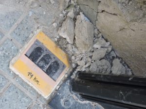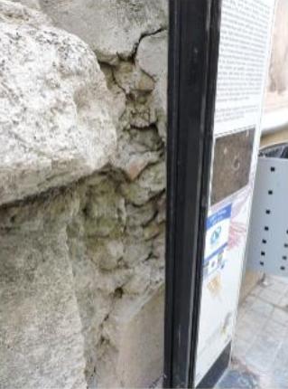 Si el flanco norte está mal, la parte adosada al palacio episcopal este deteriorando a pasos agigantados. Vean como se ha estado desmoronándose en las últimas semanas… Miren en el suelo y detrás de señal monumental.