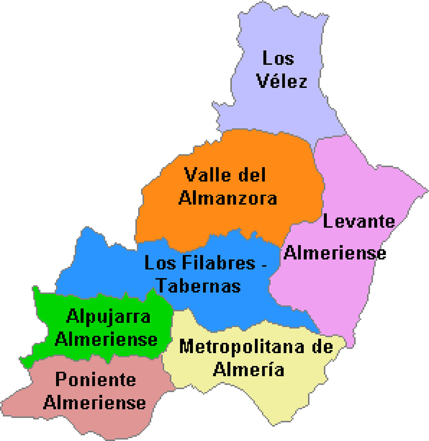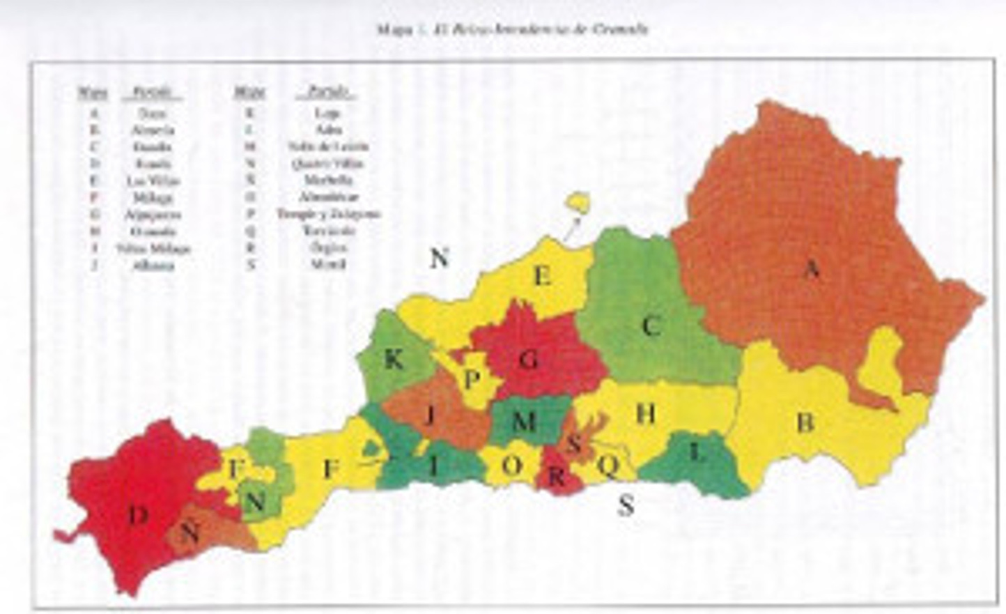 A continuación se colocaría el mapa del partido de Baza, con las comarcas de Baza, Huéscar y las de la mitad norte de la provincia de Almería… Habría que buscar un mapa antiguo o elaborarlo (es muy sencillo).