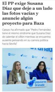 Dicha señora, y su partido, pedían en 2014, 2015, 2016, 2017 y 2018 la recuperación de la Alcazaba. No olvidamos que el proyecto de 6.2 millones de euros, anunciado desde 2009, depende de la consejería que dirige dicha doña Marifrán Carazo.
