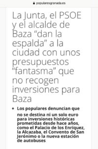 Desde 1999 el PSOE ha prometido la restauración de la Alcazaba pero jamás ha hecho nada. Juzguen ustedes, son 23 años de promesas de restauración y ni un céntimo… Eso es cumplir con la Ley del Patrimonio y con lo que prometen. En 2009, la Junta, con presencia de Juan Espadas, anunciaba 6.2 millones para el recinto militar. Miren detenidamente las siguientes imágenes. Vean a Juan Espadas en la plaza Mayor anunciado, con toda la corte socialista, la restauración definitiva de la Alcazaba. Han pasado 13 años y no han hecho nada. Ahora en 2022 vuelve a Baza ¿Ha vuelto a presentare para tomarnos el pelo de nuevo? Estos son los socialistas que nos han gobernado y no otros.