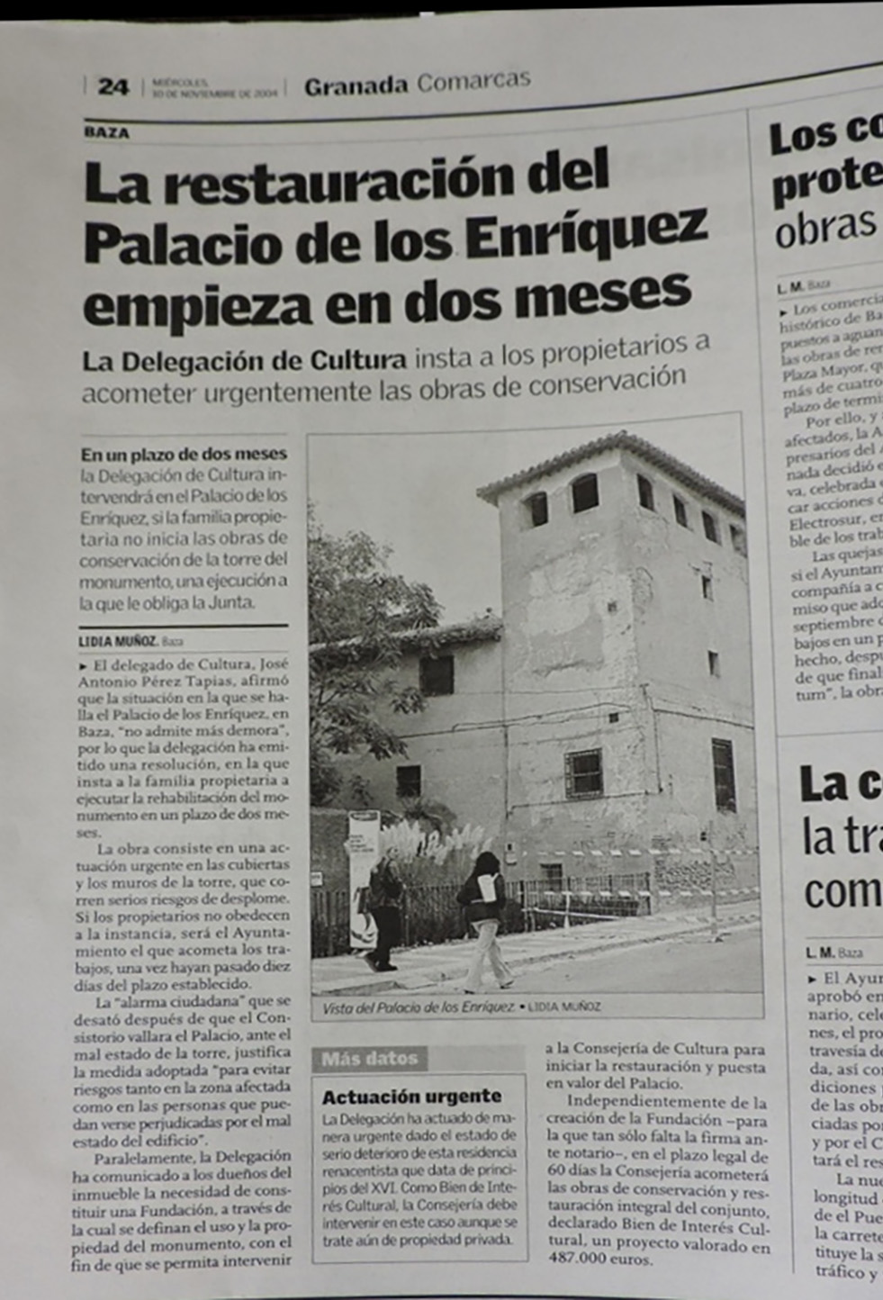 Ahora, en la primavera de 2023, el candidato del PP en Baza, Pedro J. Ramos, propone la restauración del palacio de los Enríquez como Museo Etnográfico y de Costumbres Populares, convirtiéndose en motor de reactivación del turismo en la ciudad.