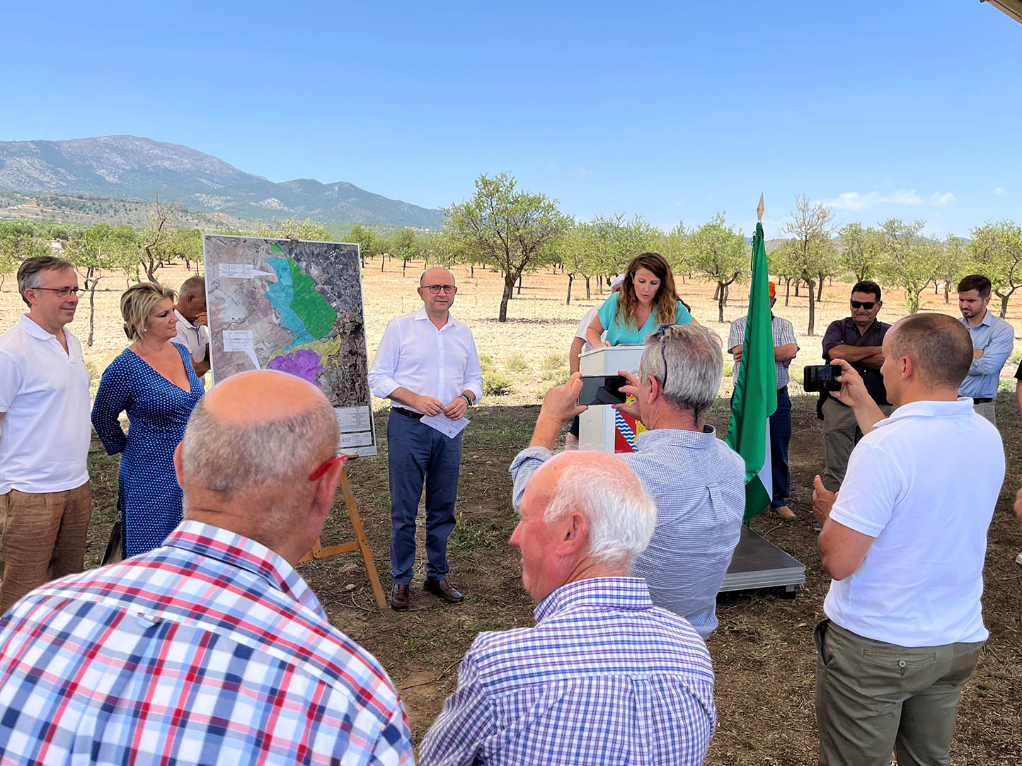 La pasada semana la comunidad de Regantes Carrasca, Potril e Inchar vivió un momento histórico con la colocación de la primera piedra de su esperada obra de modernización. Este significativo evento contó con la presencia de distinguidas personalidades, entre ellas Manuel Gómez Galera, Director General de la Producción Agrícola y Ganadera de la Consejería, Carmen Lidia Reyes, nueva Delegada de la Consejería de Agricultura, Ganadería y Pesca y Desarrollo Rural en Granada Francisco Reyes, Jefe del Servicio de Regadíos de la Delegación Territorial y la alcaldesa de Caniles, María del Pilar Vázquez.