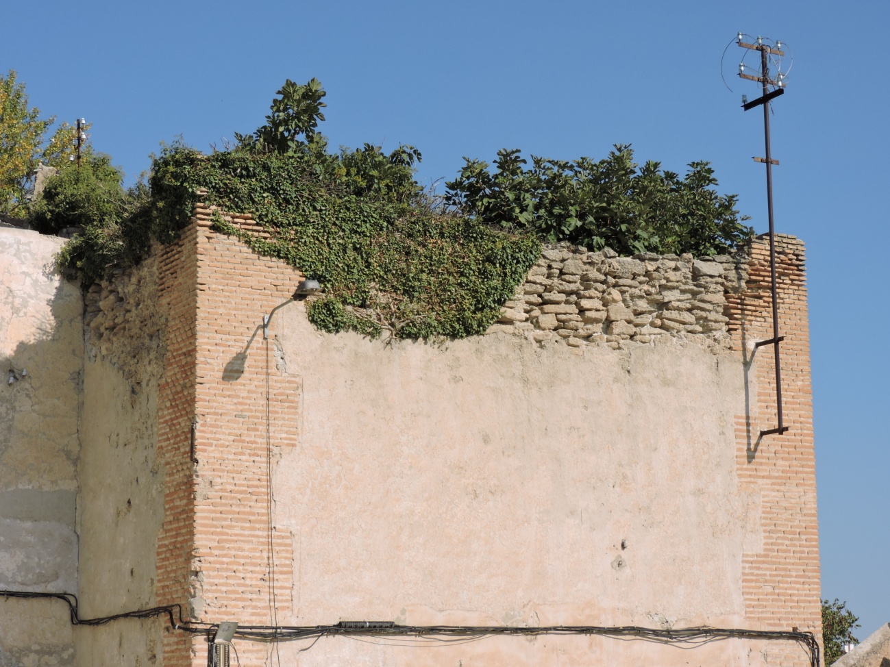 Las capas que recubrían las partes superiores del paramento de las fachadas están desmoronándose día a día. ¿Han protegido el Ayuntamiento y la Junta la torre de la almazara de San Jerónimo (BIC)? Pues va a ser que la almazara, incluida su torre, se les ha olvidado por completo a pesar de que el consistorio bastetano afirma que ha acometido las obras de emergencia.