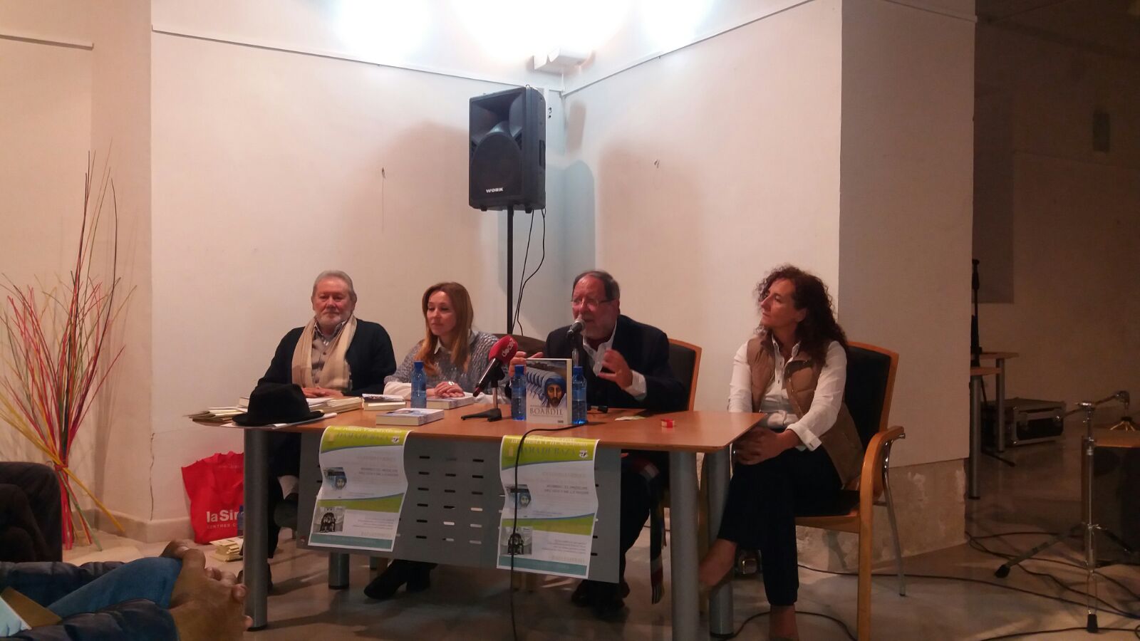 Para celebrar el Día del Libro, el Aula, este año de 2017, contó con la presentación de la novela histórica “Boabdil. El Príncipe del día y la noche” del escritor granadino, afincado en Guadix, Antonio Enrique. Sin lugar a dudas, un acto muy importante, que nos transportó a la época del epílogo final del Reino Nazarí de Granada. El broche musical que se propuso para amenizar el acto, también llevaba nombre histórico “Zalema”, un saludo utilizado por las distintas culturas, cuyo significado es “la paz sea contigo”. “Zalema” es un grupo musical compuesto al cante por Raquel Moreno, a la guitarra Antonio “Capote”, al clarinete Miguel Ángel Ruiz y a la percusión Alberto Maezo. Un grupo musical que fusiona las canciones sefardíes y andalusíes con el flamenco y que versiona, de una forma magistral, los antiguos romances como fue el de El Conde Olinos y, para esta ocasión, la adaptación musical del Romance del Cerco de Baza, que casi hizo levitar al numeroso público asistente.