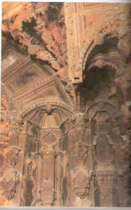 Ya han caído unas cuantas piezas, entre ellas varias águilas talladas en madera del siglo XVIII. Tras estas caídas puede que se produzcan más desplomes de consideración. Estos hechos demuestran el estado crítico de esta magnífica obra de arte…En la visita de enero de 2023 vimos muchas de estas pequeñas piezas en uno de los rincones del camarín.
