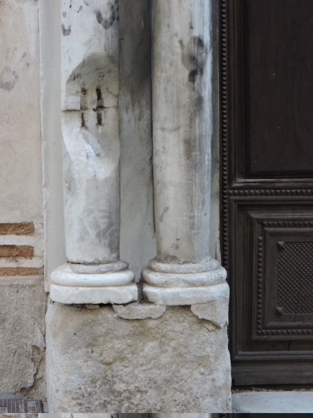 Al no realizarse las intervenciones de restauración necesarias (mutilación de uno de los fustes…) las columnas que se conservaban correctamente hasta hace diez años están soportando más peso del habitual y están resquebrajándose, tanto en fustes como en capiteles. Observen bien, para Cultura, el Ayuntamiento y el Defensor está restaurada. ¡Qué descaro¡, ¡qué poca vergüenza¡