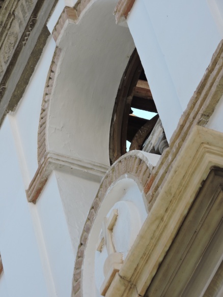 Claves de los arcos agrietándose y aleros desmoronándose.