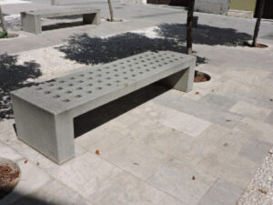 Solicitamos bancos con formas y diseños tradicionales, los marcados en el PGOU. Apuntando a los de hierro, por ser más duraderos y necesitar menos mantenimiento. El consistorio presenta bancos de granito, fuera de la normativa y de la tradición local.