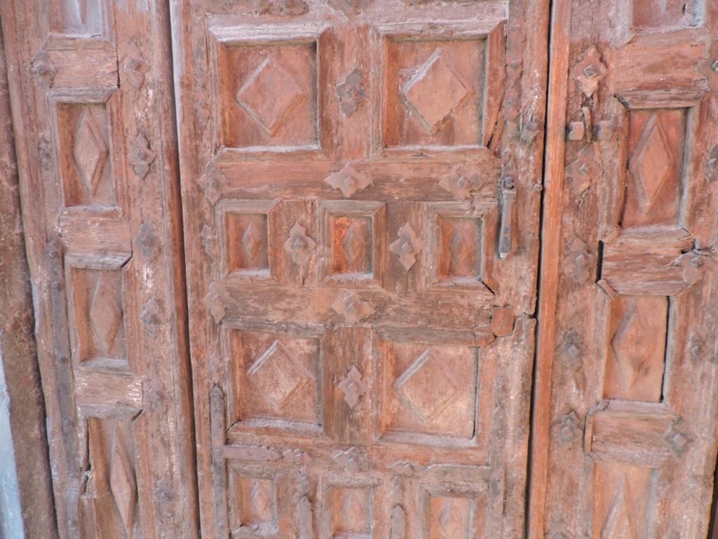 Puerta de madera. La magnífica puerta de entrada, una de las mejores de la ciudad, necesita urgentemente una buena consolidación y puesta en valor, dejándola en color caoba. Con el paso de los años está agrietándose cada vez más, incluso está perdiendo parte de la madera….Llevamos 23 años pidiendo ayuda mientras llueven millones de inversiones a Guadix. Clama al cielo. Su estado es alarmante, especialmente en su parte inferior, con pérdidas evidentes de madera.