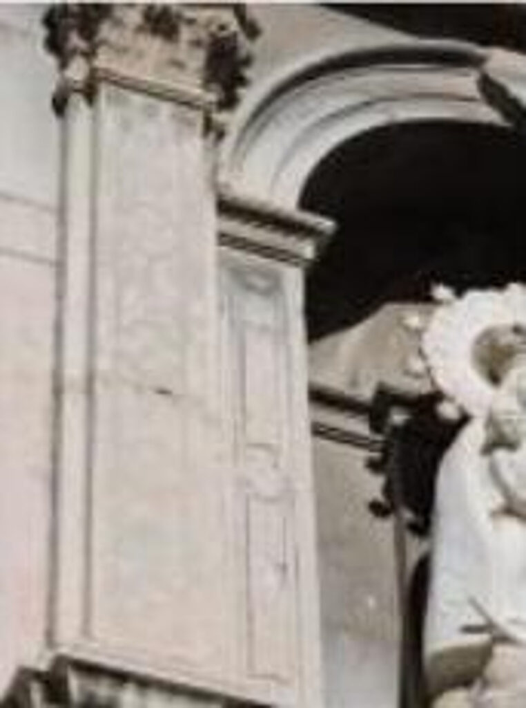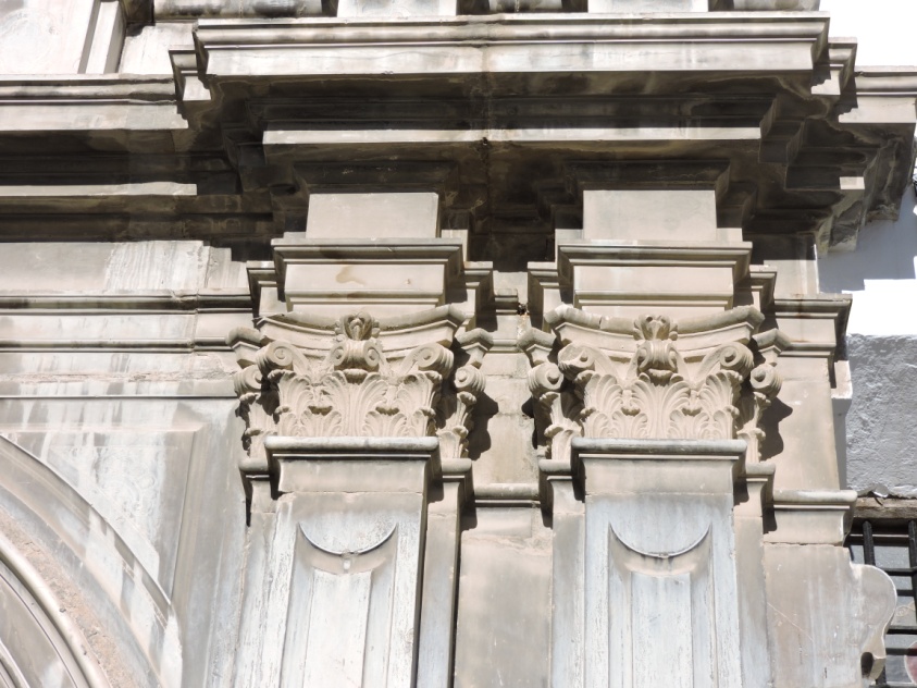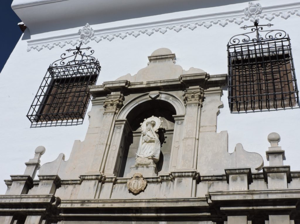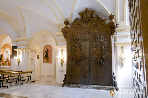 Portada  La portada de mármol está hoy en día (como hace 23 años)  muy deslucida. Como ya nos indicaron los frailes, necesitaría una limpieza que le devuelva su antiguo esplendor. Por supuesto cualquier intervención debería realizarse bajo el control de especialistas para que no ocurra lo sucedido con otras actuaciones realizadas con anterioridad por distintas entidades en Baza.