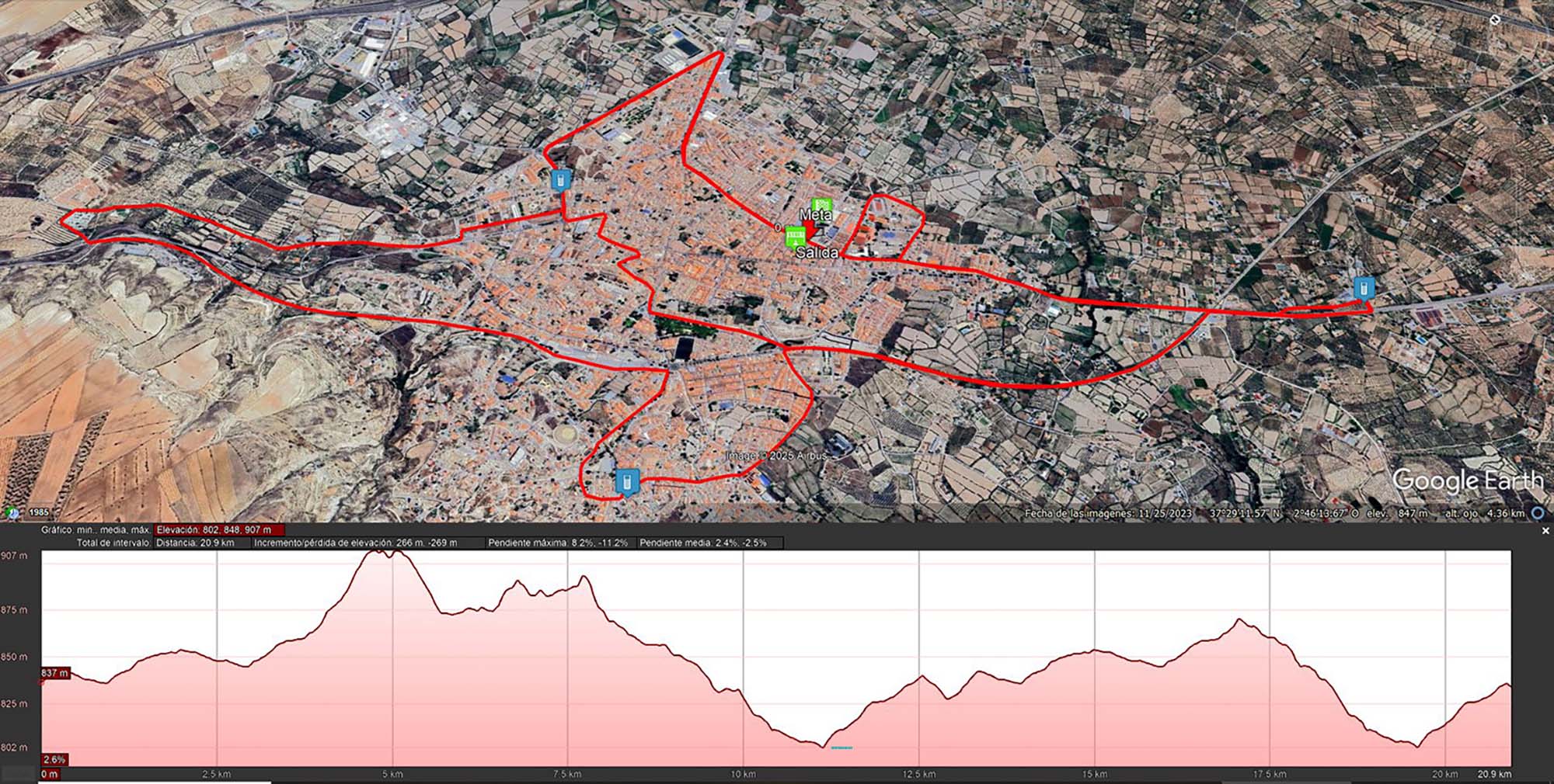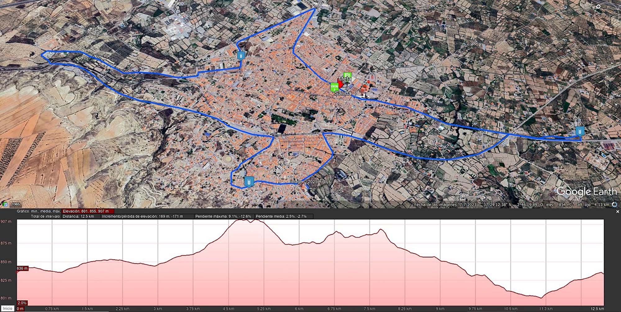 El recorrido de la prueba se iniciará en dirección a la carretera de Caniles y continuará por el camino del Caserío de Montoro, regresando después hacia Baza por la Vía Verde. Los corredores pasarán por el barrio de Las Cuevas, el Recinto Ferial y la zona del cementerio, para finalmente alcanzar la carretera de Benamaurel y la avenida José Salinas. Los participantes en la media maratón repetirán el circuito, adentrándose en el centro urbano por la Carrera de Palacio y recorriendo calles como Caños Dorados, Alhóndiga y Plaza Mayor antes de regresar al punto de meta.