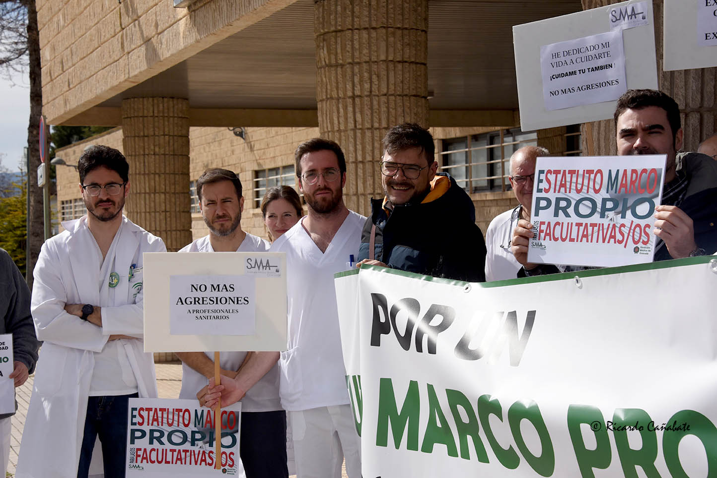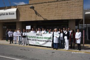 Concentración de médicos en el Hospital de Baza en protesta por el borrador de condiciones laborales del Ministerio de Sanidad y un Estatuto Marco propio. En la mañana de ayer, un numeroso grupo de médicos del Hospital de Baza se congregó a las puertas del centro sanitario para manifestar su rechazo al borrador de condiciones laborales elaborado por el Ministerio de Sanidad. La concentración, convocada por los facultativos de la provincia de Granada, responde a la falta de respuesta por parte de la Administración a sus reivindicaciones.