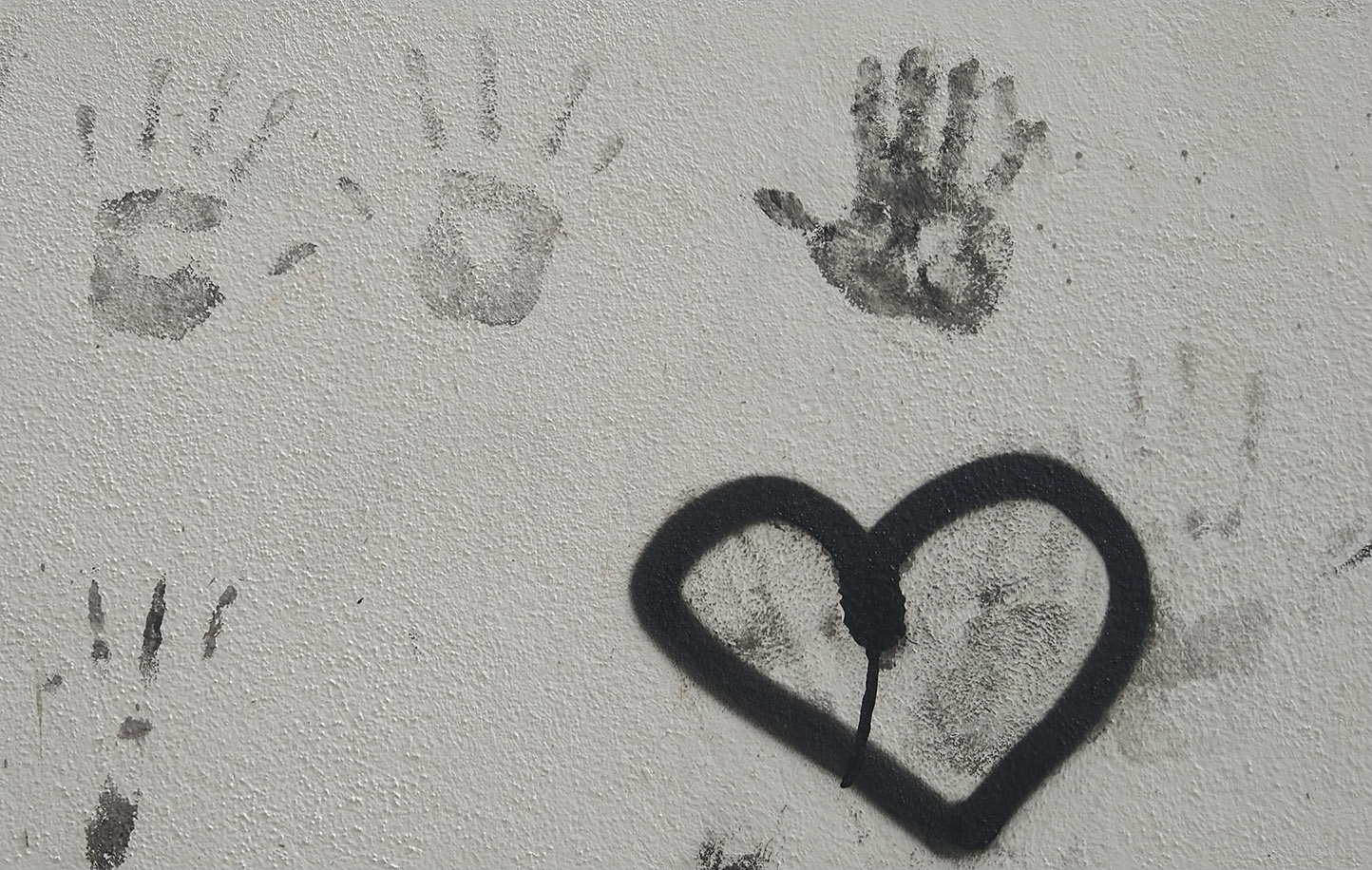Mientras recorro las calles, encuentro por las paredes restos del último Cascamorras y esa imagen de manos negras me hace pensar en pinturas rupestres y en nuestros primeros antepasados, que usaban sangre, arcillas o pigmentos vegetales para dejar sus primeras expresiones pictóricas en las paredes de las cuevas. Junto a un puñado de manos de distintos tamaños, un corazón que pintó alguna persona romántica que en algún momento de su vida aprendió a relacionar esa figura con el amor. Los humanos trogloditas que plasmaban la huella de sus manos estaban experimentando, mientras que quien pintó el corazón nos dejó la plasmación de un aprendizaje a lo largo de su experiencia. Fotografío la pared y pienso que parece mentira que hayan pasado tantos miles de años entre las primeras expresiones artísticas del ser humano, y la costumbre de manchar las paredes blancas cada seis de septiembre, fecha de la tradición bastetana más conocida. Lo que para los foráneos que desconocen la fiesta del Cascamorras puede ser simplemente una especie de vandalismo urbano, y así me lo definieron un día unos publicistas sevillanos que pasearon por Baza tratando de inspirarse para un encargo sobre la marca de ciudad, para los bastetanos es algo que va ligado a sus emociones y sentimientos, y tan grabado en sus corazones como la pintura negra que se queda por muros y paredes, a lo largo de los años en muchas ocasiones. No, no desentona nada el corazón negro junto a las manos, y es bonito que aún haya quien exprese el amor sin personalizar con nombres y adjetivos.