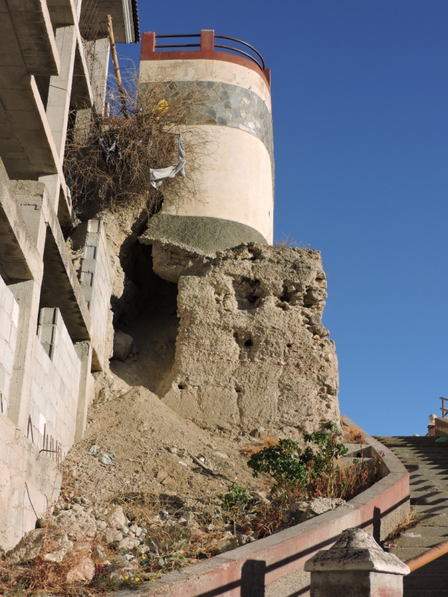 - Alcazaba. BIC. Monumento Nacional. En el PGOU se propone que se recupere como parque arqueológico… Su rehabilitación ha sido pregonada por la Junta y el Ayuntamiento, año tras año, desde 1999. La parte alta es de propiedad municipal. Sugerencia. Que el Geoparque mueva, pida al Ayuntamiento y a la Junta que apliquen el Plan anunciado a lo largo de más de dos décadas. El Geoparque podría incluso proponer (en un futuro) la recuperación de las partes ocultas de la alcazaba tras casas adosadas (lienzos de murallas, torres…).