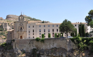 Observen el Parador Nacional de Cuenca. La iglesia, abajo, sirve como museo, sala de exposiciones…