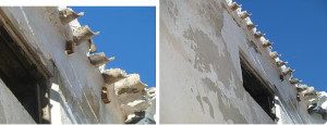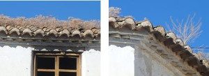 Dicho informador nos dijo, en 2013, que nos fijáramos en las cubiertas y veríamos que las tejas seguían mal colocadas, que ni tan siquiera se habían reubicado en su sitio, lo que provocaría la caída de gran parte o de toda la techumbre. Hecho que está sucediendo.