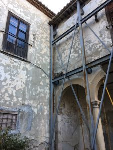 Varios de los módulos que configuran el convento y almazara de San Jerónimo presentan numerosos hundimientos de techumbres, estando sin cubierta y sin impermeabilizar la mayoría, incumpliéndose lo dictado por la Junta el 14 de abril 2016: cubrición e impermeabilización de todo el conjunto. No han hecho nada. El flanco sur del convento (propiedad municipal) y la almazara, siguen cayendo. El PP, desde 2014, está reclamando su recuperación pero desde que está dirigiendo la Junta no ha anunciado ningún proyecto.