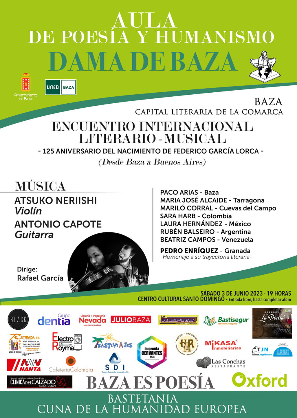 – 20:30h. Tradicional Concierto de Navidad de los coros polifónicos “Alcazaba” y “Juan Hernández” junto a la Banda Municipal de Música de Baza. Teatro Dengra. Entrada gratuita.