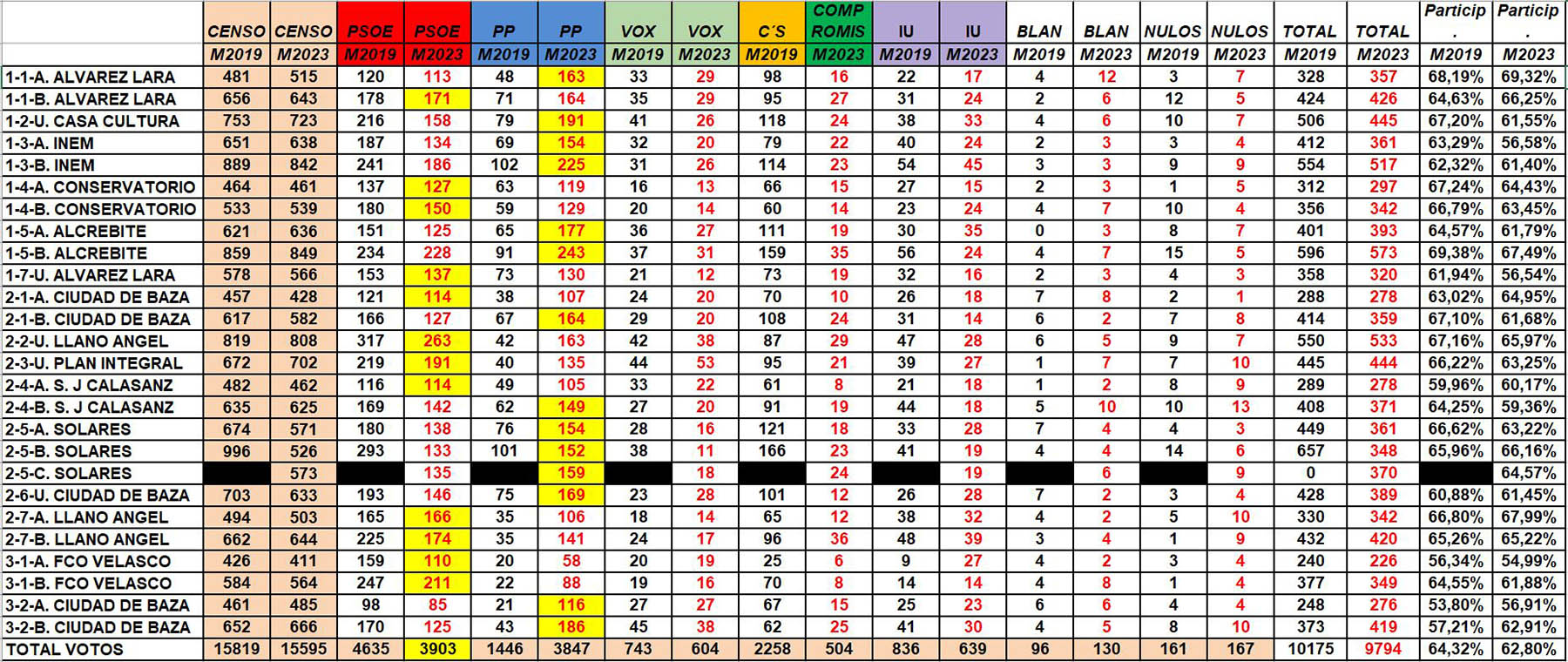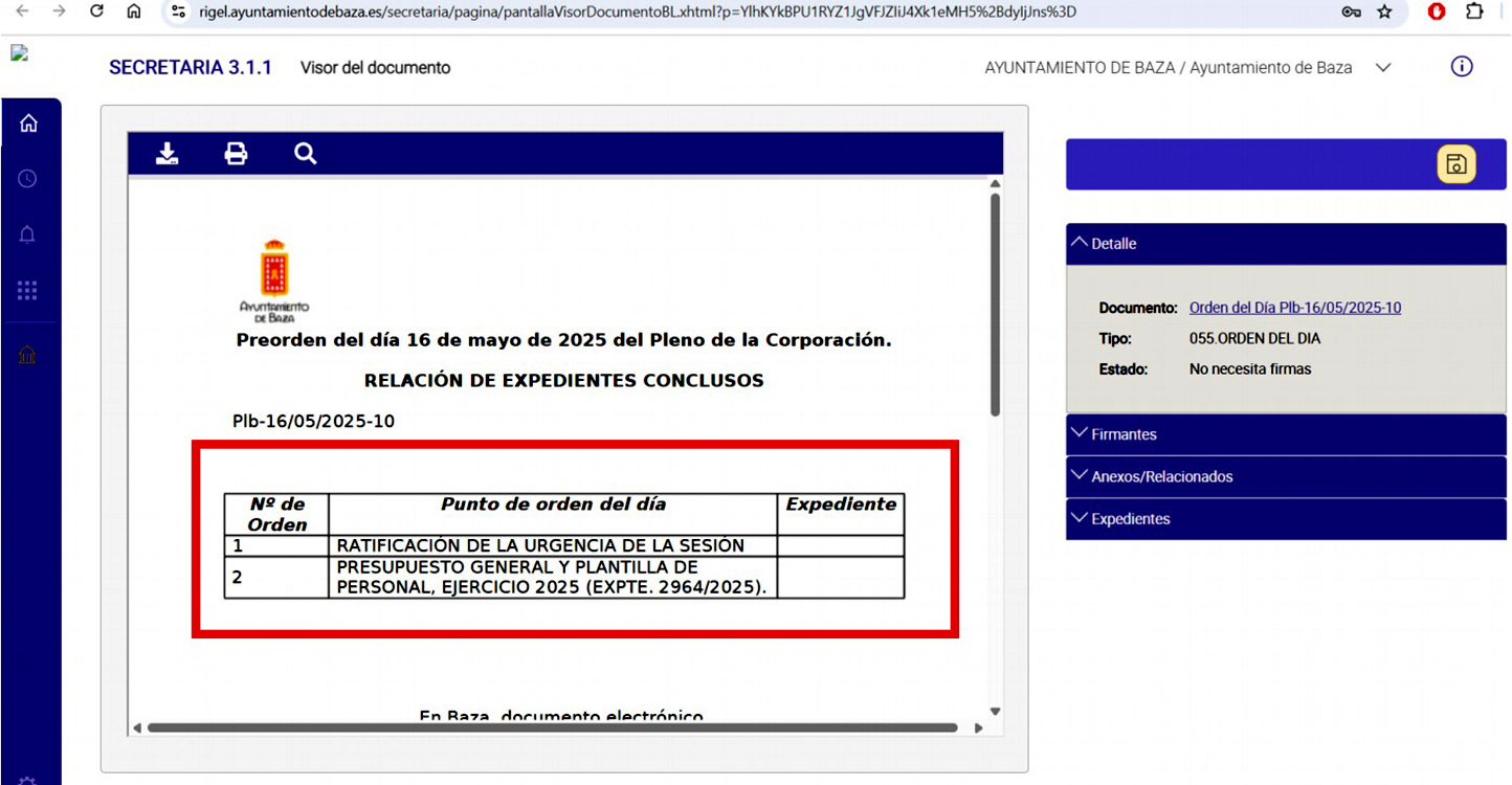 La portavoz de Compromiso por Baza (CxB), Lidia Sánchez, anunció directamente su voto en contra, dando por conocidas las razones. En la misma línea, el portavoz de Izquierda Unida, José Cano, sostuvo que si el acta no estaba clara no debía aprobarse, al no haberse aclarado los hechos controvertidos. Desde el PSOE, su portavoz, Manuel Gavilán, coincidió en el fondo del planteamiento, argumentando que, aunque el acta se apoya en medios audiovisuales, el reglamento contempla que se refleje lo sucedido en la sesión y que existió una controversia que no quedó aclarada ni recogida, lo que, a su juicio, dificultaba su aprobación.