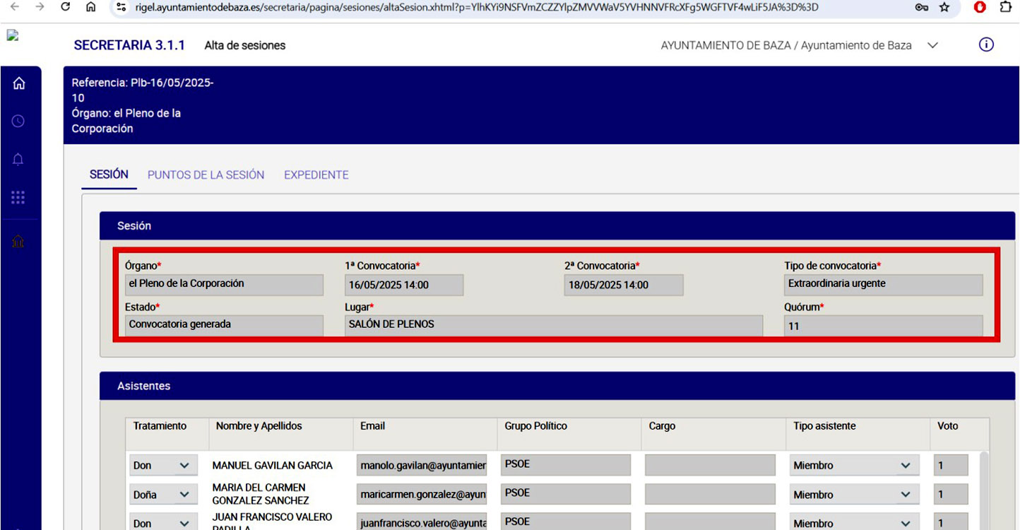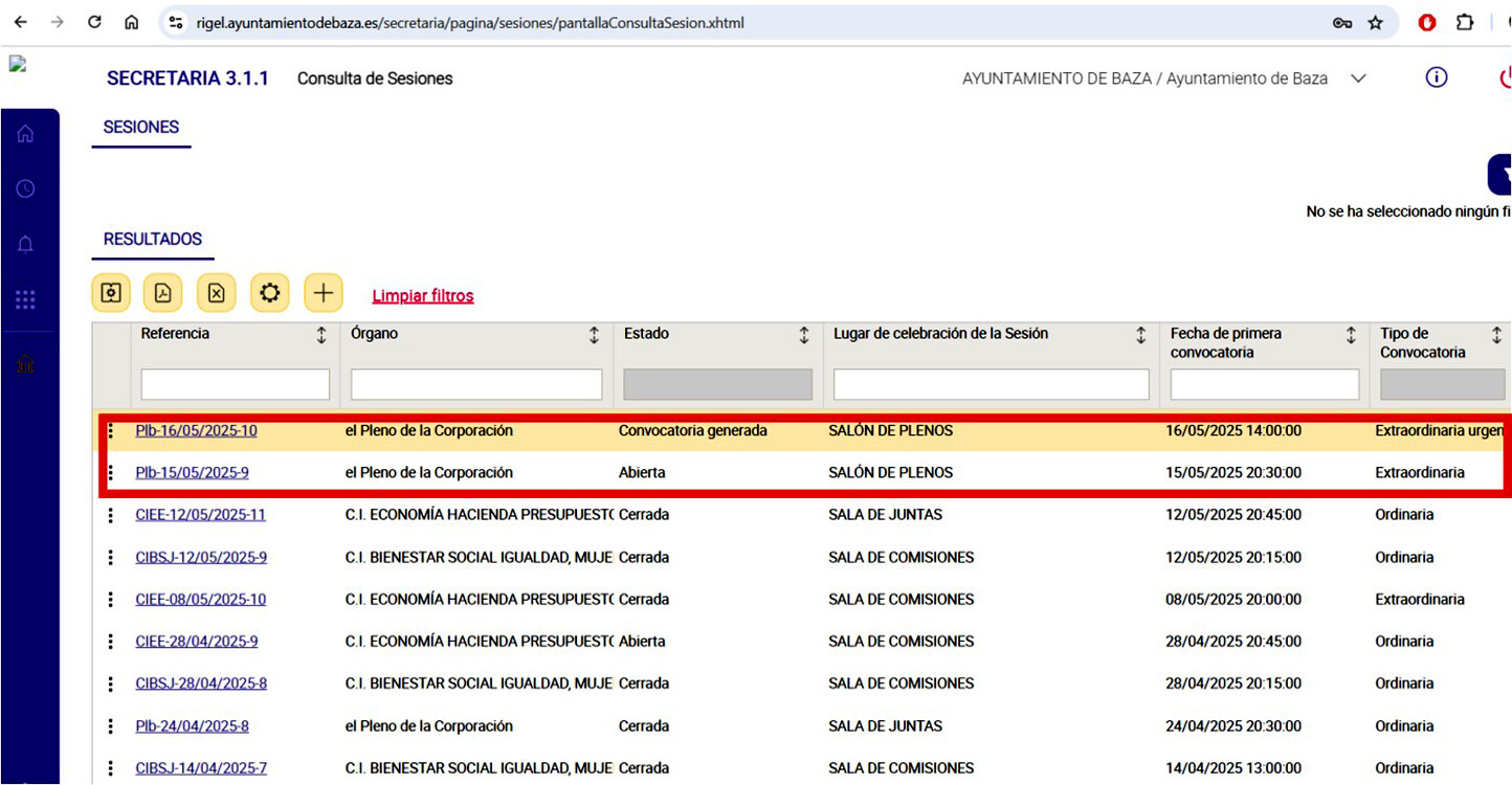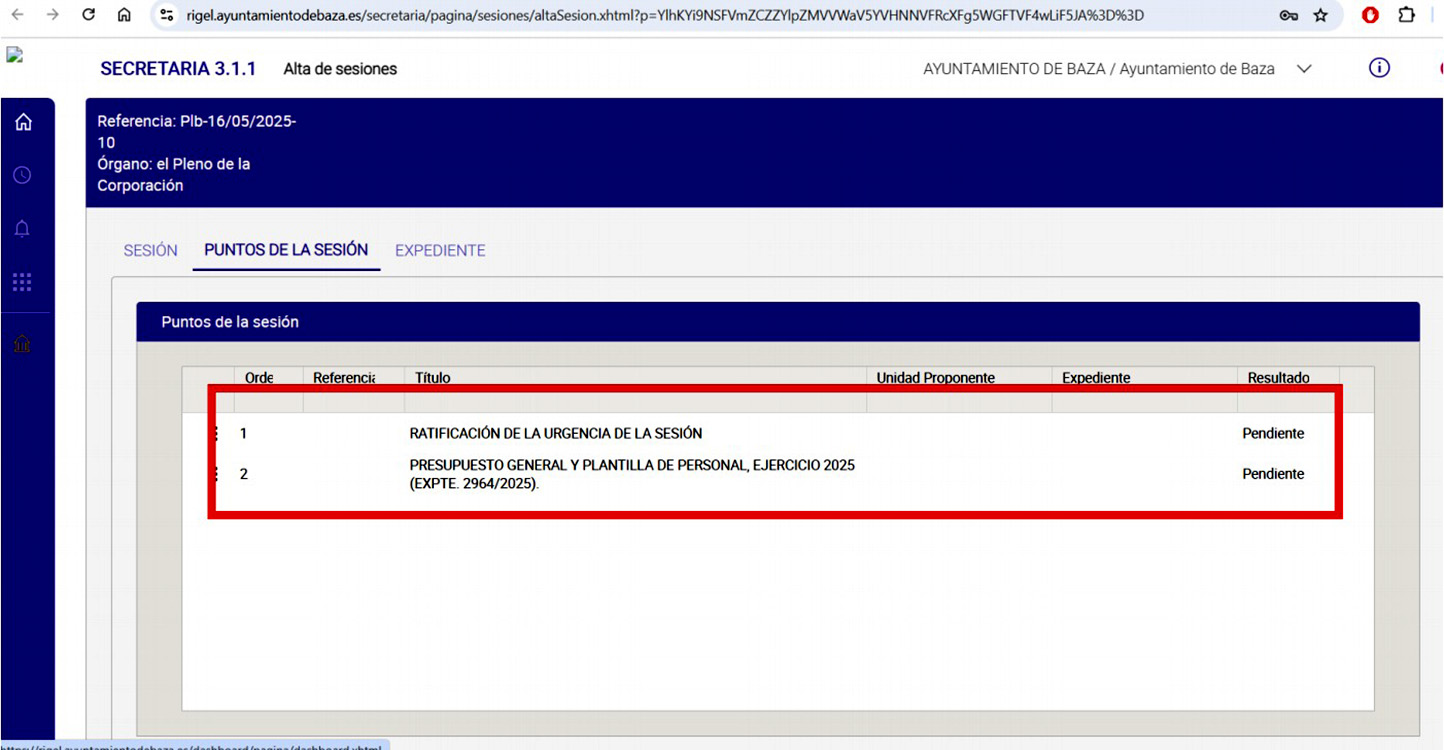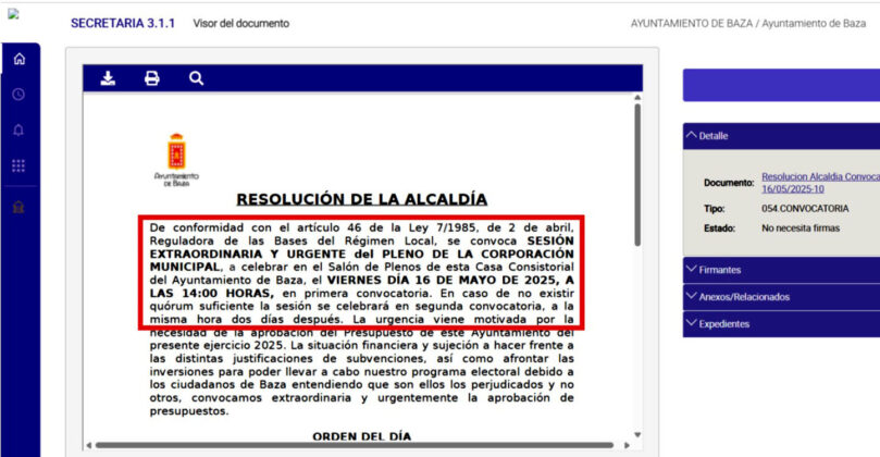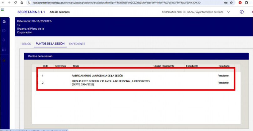 En todo caso una sesión ordinaria a celebrar en el Salón de Plenos de la Casa Consistorial del Ayuntamiento de Baza, hoy 18 de diciembre de 2025, a las 20:30 horas, en primera convocatoria y, en el caso de no exista quórum suficiente, la sesión se celebraría en segunda convocatoria, a la misma hora dos días después, siempre con el siguiente Orden del Día: