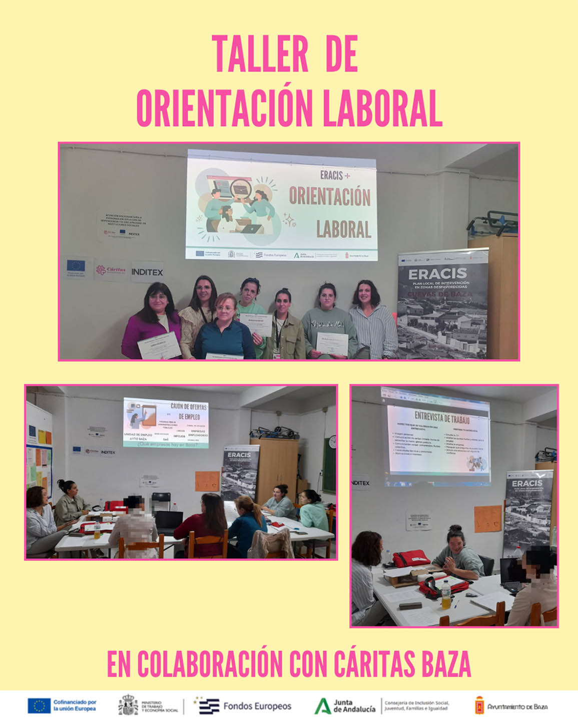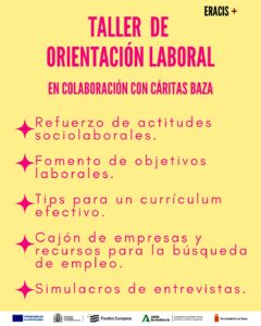 El programa ERACIS+ refuerza en Cuevas de Baza su apoyo a la inclusión laboral de personas con discapacidad. Coincidiendo con la conmemoración del Día Internacional de las Personas con Discapacidad, el pasado 3 de diciembre, el programa ERACIS+ ha puesto de relieve la labor que desarrolla en Cuevas de Baza para promover la igualdad de oportunidades en el acceso al empleo. La iniciativa, financiada por el Fondo Social Europeo Plus y la Consejería de Inclusión Social de la Junta de Andalucía, centra su trabajo en mejorar la empleabilidad de quienes encuentran más dificultades para incorporarse al mercado laboral.
