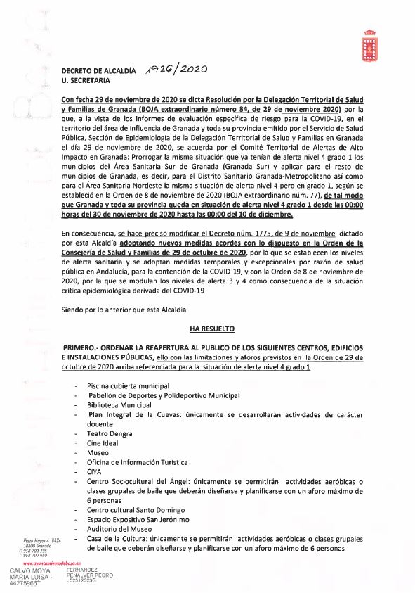 La Asociación de Empresarios del Altiplano y de Comercio quiere manifestar su satisfacción por la reapertura de toda la actividad empresarial, hoy día 30 de noviembre, con las mismas condiciones que el resto de Andalucía, deseando que en fecha próxima podamos tener un horario normal.