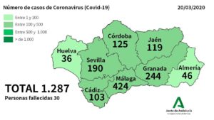 Las cifras totales en Granada alcanzan los 579 positivos en coronavirus, 263 pacientes aislados en hospitales y UCI y 25 fallecidos desde que se inició la pandemia, con el primer caso en la provincia, el pasado 12 de marzo. También se han dado ya 29 altas en los centros sanitarios, si bien sólo consta una persona curada.