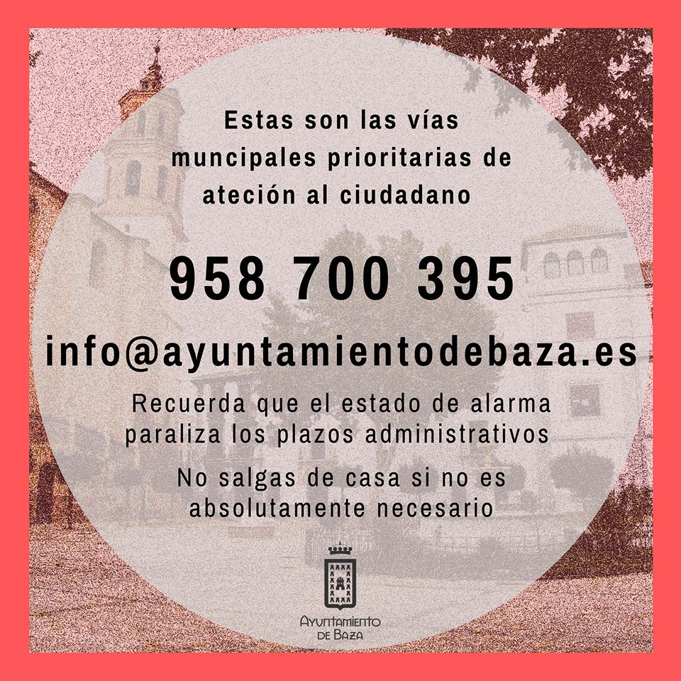 Baza activa su Plan Municipal de Emergencias. El Ayuntamiento de Baza mantiene activo su Plan Municipal de Emergencias en el que se recogen todos los recursos municipales para hacer frente a una situación de emergencias como la actual, provocada por la pandemia del COVID- 19.