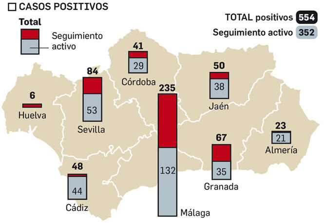 Las cifras totales en Granada alcanzan los 579 positivos en coronavirus, 263 pacientes aislados en hospitales y UCI y 25 fallecidos desde que se inició la pandemia, con el primer caso en la provincia, el pasado 12 de marzo. También se han dado ya 29 altas en los centros sanitarios, si bien sólo consta una persona curada.