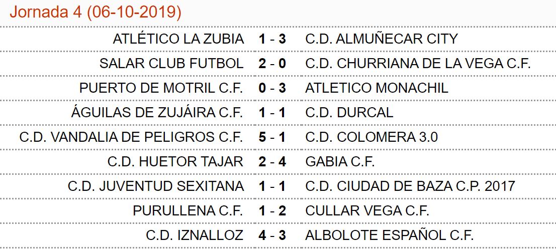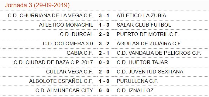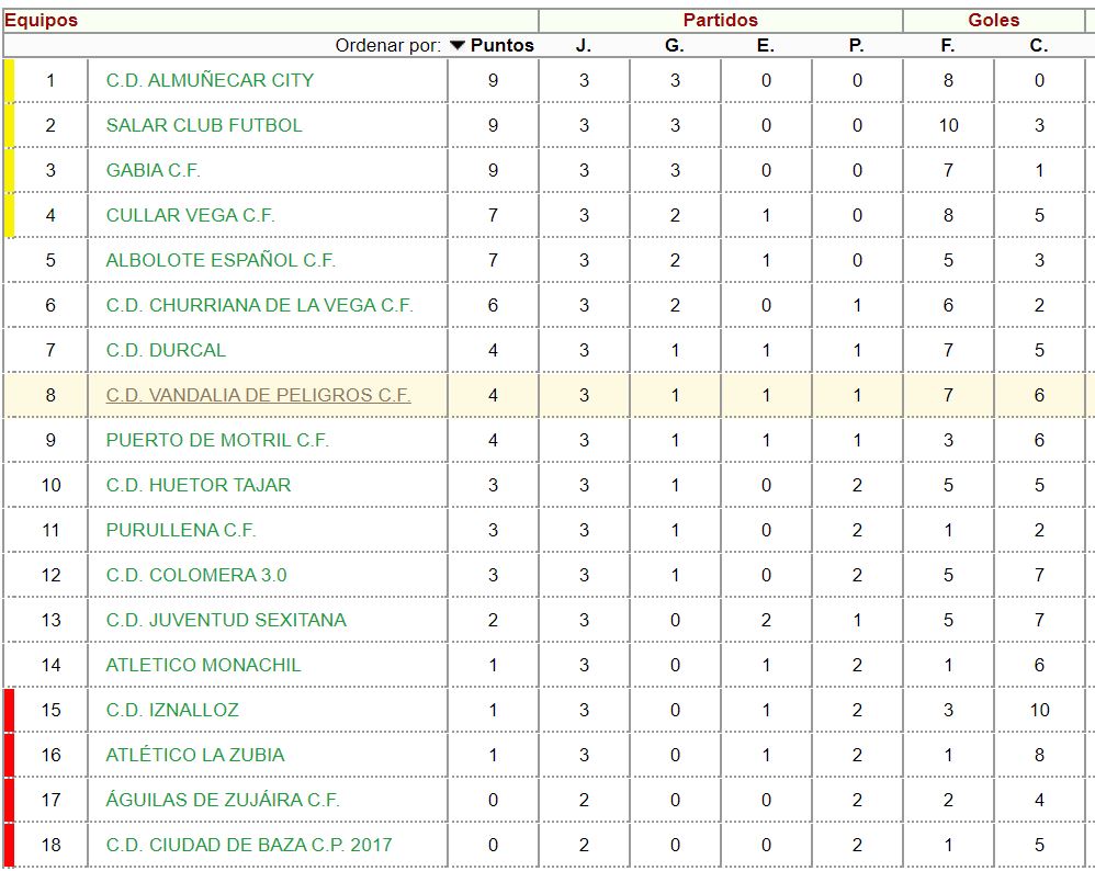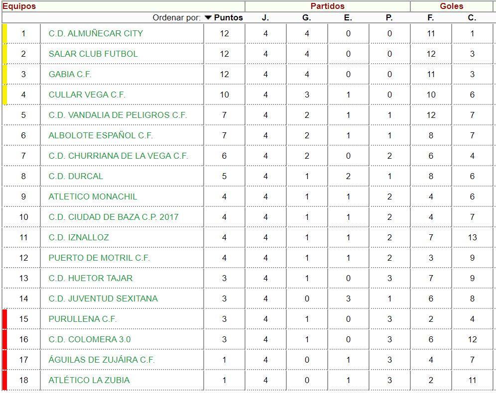 Clasificación en el grupo granadino de Primera Andaluza, tras la jornada 3: