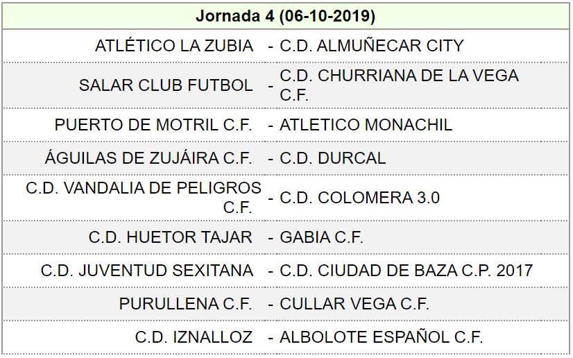 Encuentros de la jornada 4 para el próximo fin de semana: