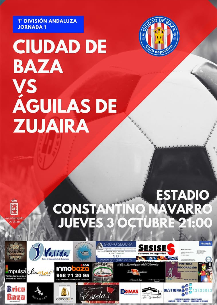 El CD Ciudad de Baza logra su primera victoria liguera en el encuentro aplazado en su día ante el Águilas de Zujaira. Un encuentro que empezó con un protagonismo algo excesivo del colegiado Sánchez Gómez, con decisiones en las que tenían continuidad los lanzamientos de faltas contra la portería local y la sucesión de cartulinas.