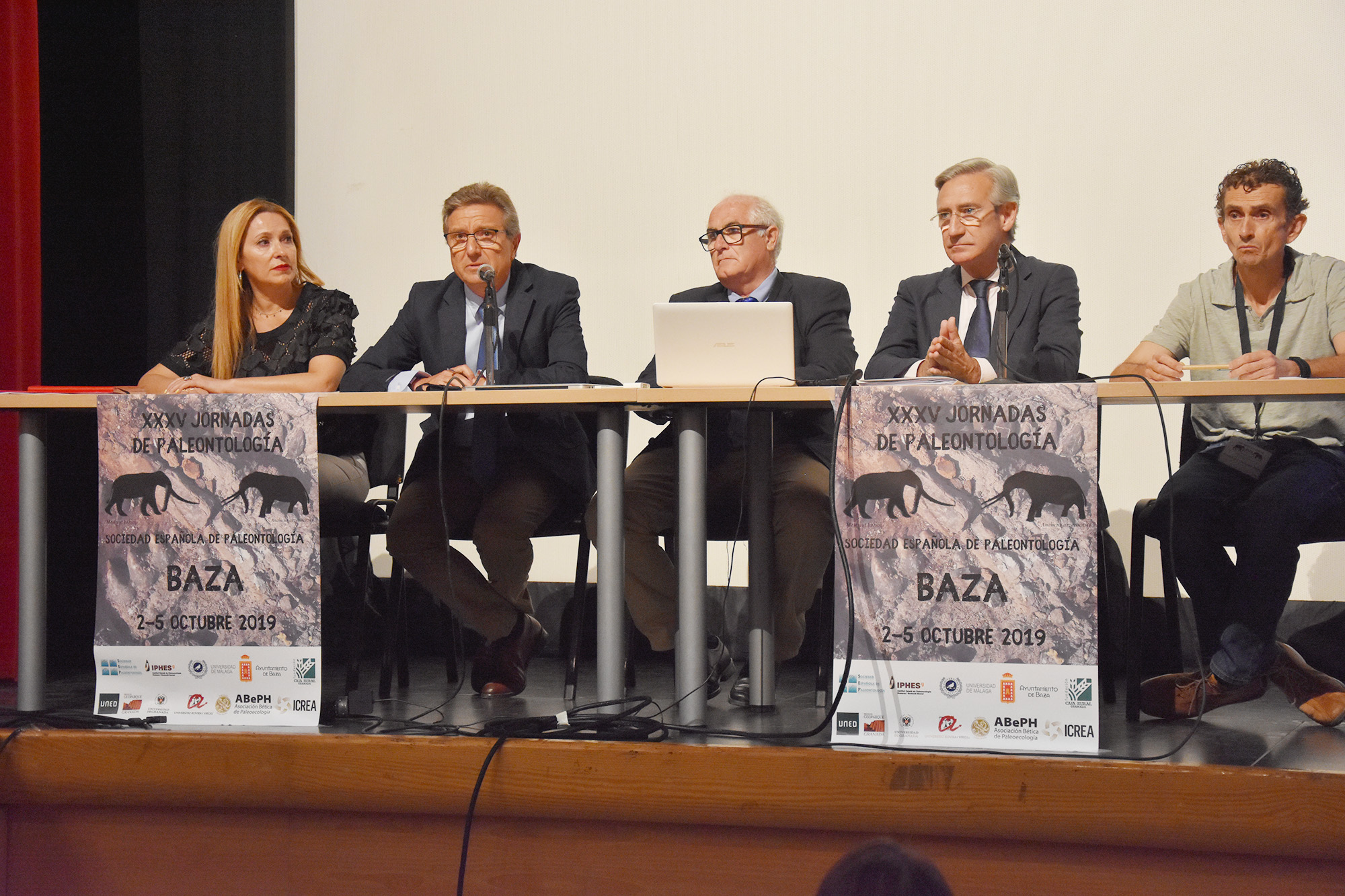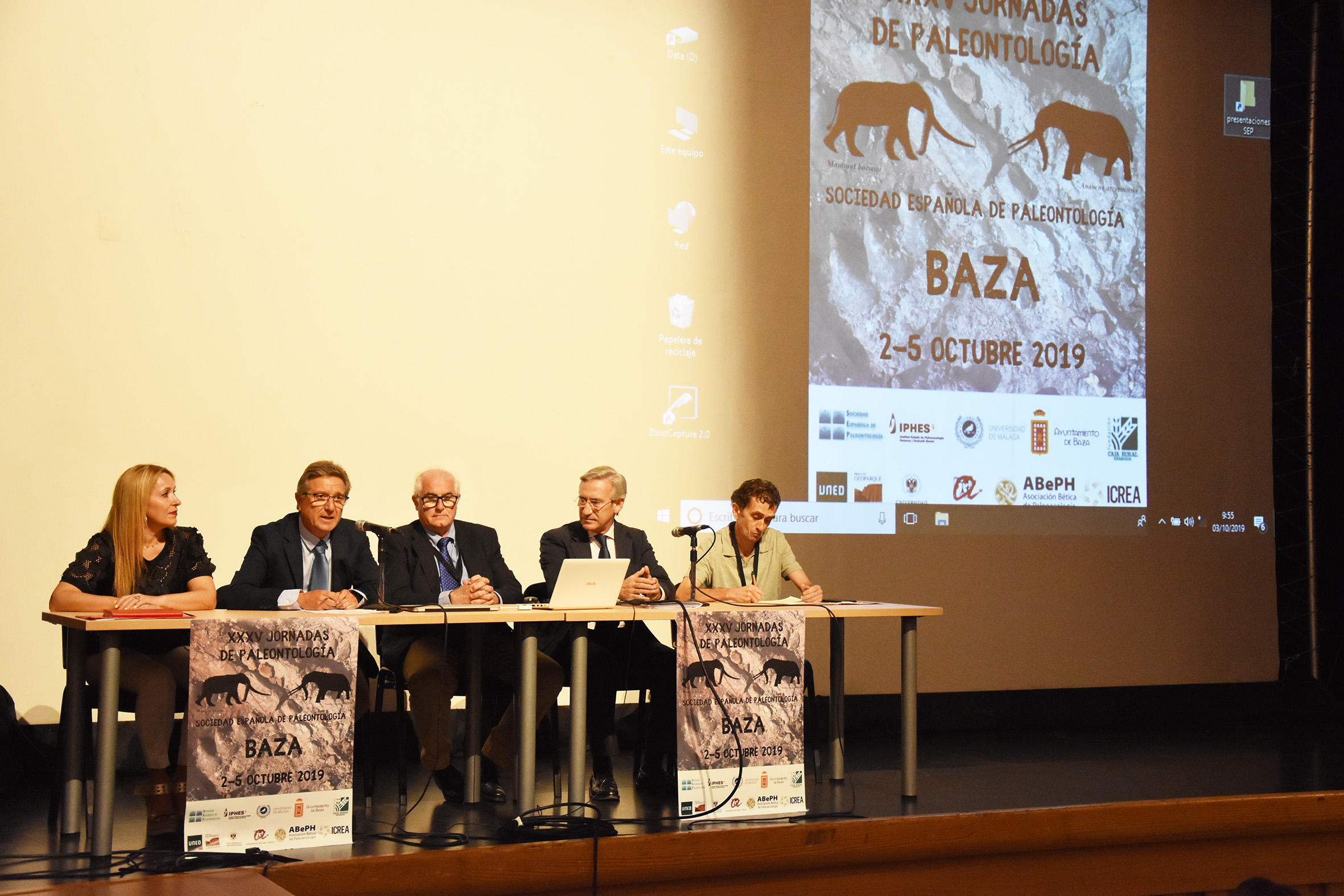 Baza acoge las XXXV Jornadas de Paleontología y el congreso anual de la Sociedad Española de Paleontología. Ayer se ponían en marcha las XXXV Jornadas de Paleontología en Baza, con la celebración del acto inaugural cuya mesa estaba formada por Miguel Ángel Araúz, director General de Patrimonio Cultural de la Junta de Andalucía; Francisco Rodríguez Tovar, presidente de la Sociedad Española de Paleontología; Manuel Gavilán, teniente de Alcalde del Ayuntamiento de Baza; Yolanda Fernández Moreno, concejala presidenta del área de cultura del Ayuntamiento de Baza y Bienvenido Martínez, presidente del Comité Organizador de las Jornadas.