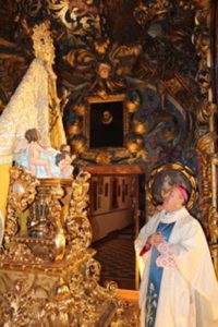 Hoy, muchos prefieren esconder su fe y convertir nuestras tradiciones y devociones en simples costumbres o expresiones culturales y folklóricas. Estamos ante una profunda crisis de fe, ante una pérdida del sentido religioso, que constituye el mayor desafío para la Iglesia de hoy. Desde la Virgen, la fe persevera siempre viva y haréis impenetrables vuestras fronteras al postmoderno alejamiento de Dios. Nuestras fiestas patronales fortalecerán nuestra convicción de que Dios está y quiere estar presente en la vida de todos los bastetanos. La Virgen quiere abrir a los hombres el acceso a la fe; enseñarnos, en la ternura de sus brazos maternales, a confiar en Dios, que nos ha amado hasta el extremo (Jn 13, 1); a construirnos desde Jesucristo crucificado y resucitado. Queridos hijos de Baza, no renunciéis nunca a vuestra fe, ¡Dios no es enemigo del hombre sino quien da respuestas y sentido a los grandes conflictos que el hombre vive dentro y fuera de su existencia! Acoged siempre a Jesucristo en medio de vuestras tareas diarias y encontrad en Él las razones para construir una paz duradera y el servicio al bien común, en la maternidad de la Virgen.
