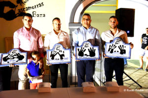 Vino después un acto muy emotivo en el que cuatro de los últimos Cascamorras, José Antonio Escudero, José Manuel García “Maíllo”, Emilio Delgado y José Heras, imponían sus huellas en unas placas de cerámica granadina con las que se toma la costumbre que en su día inició Cortijo Narváez, para lo que se contó con la presencia de todos ellos que mancharon sus manos para dejar testimonio de su participación en nuestra Fiesta de Interés Turístico Internacional.