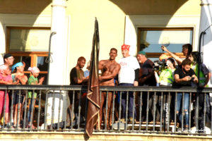 Emotivo acto el que vino después con la entrega de un traje de gala al Cascamorras de Honor, Jesús Samaniego “Sama”, con lo que se trata de ayudar a una mejor carrera de quien se entrega a los niños de Baza y Guadix en los últimos años, algo que venía haciendo con un antiguo traje de fieltro que le hacía someterse a casi toda una tortura en cada carrera y que ahora le permitirá una mayor comodidad que ayude a su total entrega en cada carrera que realiza y en las muchas actividades en que participa, entre las que destacan sus visitas a los colegios de Baza y Guadix buscando siempre algo fundamental para el futuro de esta fiesta: que nuestros niños y niñas la conozcan, la respeten y la quieran con toda su alma.