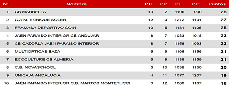 11-21 en el tercer cuarto enjugaban los diez puntos en contra del segundo y la diferencia quedaba en ocho puntos que parecían accesibles, pero la ventaja bastetana en el último y definitivo periodo solo supuso una rebaja de tres puntos más, que sentenciaron el triunfo del CB Cazorla que supo parar a los anotadores bastetanos, hasta el punto que Pablo Fernández, otra vez el mejor valorado con un 20, se quedó esta vez en 12 puntos anotados, los mismos que Martínez del Estal, mientras que el resto no llegó a la decena.