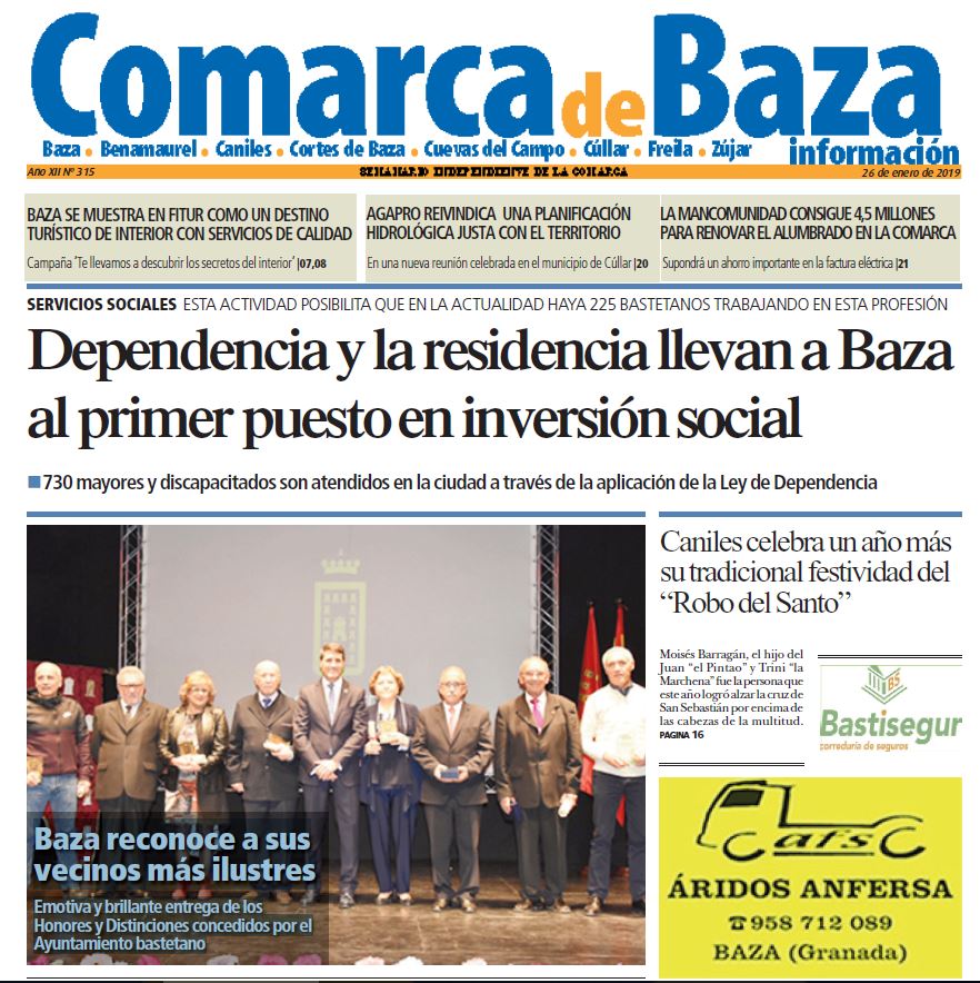 Ya está en la calle el último número del quincenal Comarca de Baza Información. Número que se editaba el pasado sábado 26 de enero y que destaca en portada las informaciones que resumimos en titulares a continuación: