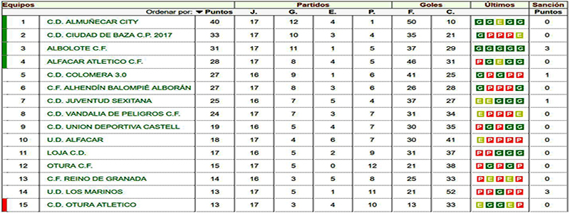 Resultados, clasificación y próxima jornada en el grupo granadino de la Segunda División Andaluza Sénior: